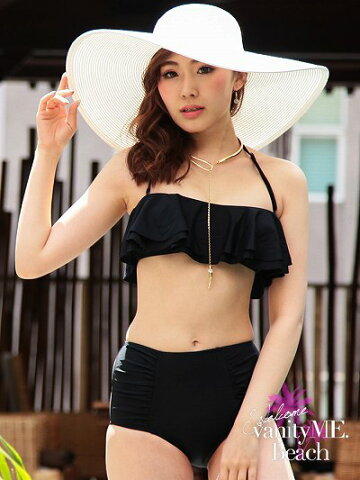 水着レディース 水着ワンピース 水着ビキニ セクシー 水着 盛れる!!ヌーディーフリルハイウエストフリルビキニ [ブラック] ビーチ リゾート レディース 外人風 インスタ vsw-14106-1