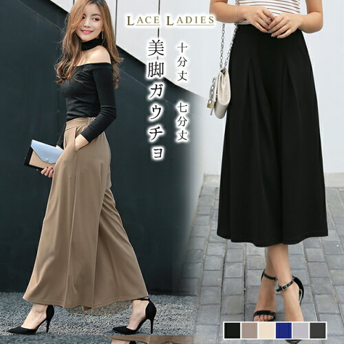 大人気 美脚 ガウチョ ワイドパンツ きれいめ 10分丈 7分丈 ガウチョパンツ スカンツ スカーチョ レディス レディース 春 夏 秋 パンツ 黒 ベージュ ネイビー グレー チャコール ゴムウエスト 十分丈 七分丈 着やせ ルーズ ワイドボトム OL オフィス 送料無料