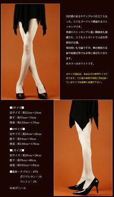 素材:ナイロン:87%//ポリウレタン:1% コットン:2%//40デニール ■Sサイズ■ 足サイズ:約22cm〜24cm//股下:約70cm〜74cm 身長:約150cm〜170cm ■Mサイズ■ 足サイズ:約24cm〜26cm//股下:約74cm〜78cm 身長:約158cm〜176cm ■Lサイズ■ 足サイズ:約26cm〜28cm//股下:約78cm〜86cm 身長:約160cm〜180cm ストッキング 白【メール便送料無料】セクシー 美脚 光沢スタイル パンティストッキング 結婚式にも et_ストッキング 白 ホワイト 光沢 結婚式 パンスト 40デニール 美脚 デザイン セクシー 衣装 ランジェリー コスプレ 通販_wl【神戸】ストッキング 白 ホワイト 光沢 結婚式 パンスト 40デニール 美脚 デザイン セクシー 衣装 ランジェリー コスプレ